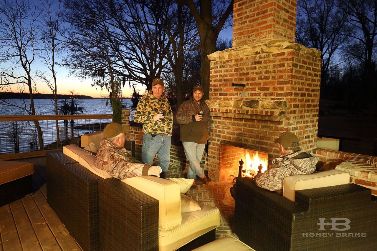 At 13,500 square feet and four floors, the main lodge is a majestic sight towering over the Red Oaks and Cypress trees on the banks of scenic Larto Lake. A web of elevated boardwalks connect the two suites in the main lodge with six additional suites. Chef prepared meals, cooked in the beautiful gourmet kitchen, are served in the lake view dining room. Social times on cool Louisiana nights are spent around the centerpiece fireplace in the The Great Room, or enjoying sunset views from numerous decks spaces. After changing from the field in the guest locker room, unwind in the indoor/outdoor game room and outdoor kitchen area with a lakeside fireplace. Maybe you’ll want to try your hand at bow fishing under the lights on the 6-slip covered boat dock.